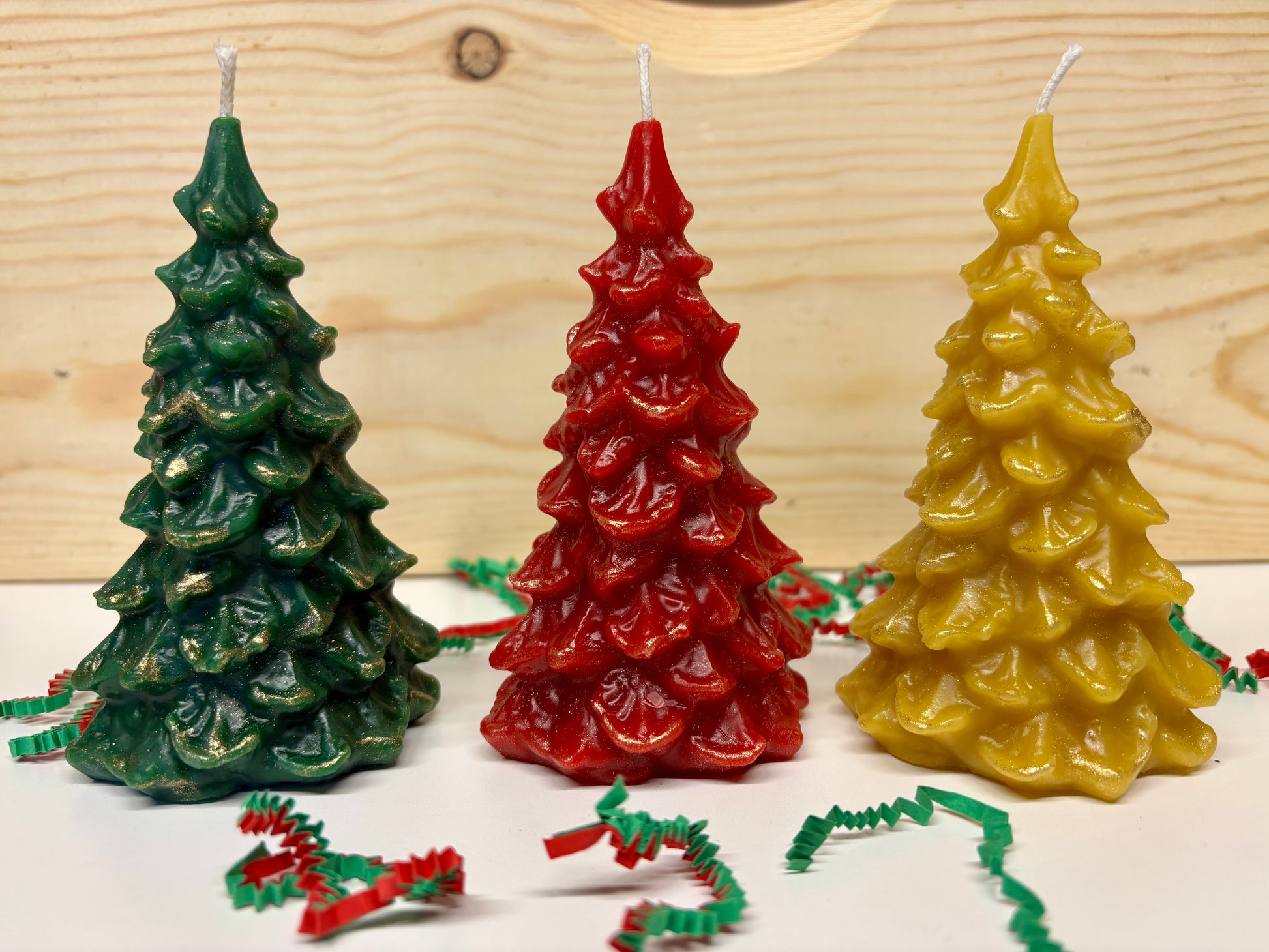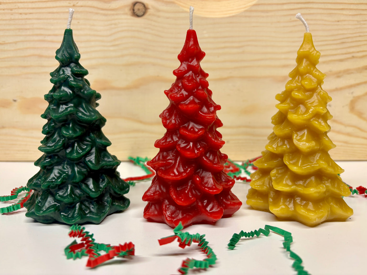 5" Beeswax Christmas Tree Candles are a beautiful, homey addition to your holiday decor. Add some shimmer with our gold dusted option in each color!